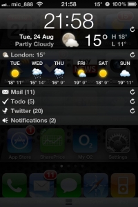LockInfo let's you put a whole raft of info on your LockScreen, HomeScreen and now InfoShade, a blind that comes down over your screen activated by a shake of your device, long press on the status bar, pinch of the springboard or many other options - you decide!